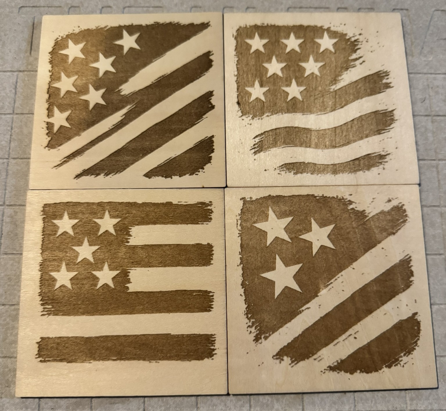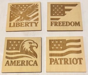 A Peek At Our Work Every item we create is designed to be both beautiful and functional. Here’s a glimpse of Beam & Birch Design’s work — each one captured with clean lines and a handcrafted touch. Wood Coasters Patriotic Collection Fun & Whimsical Collection